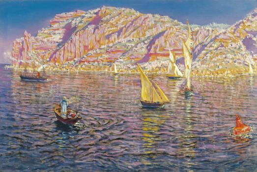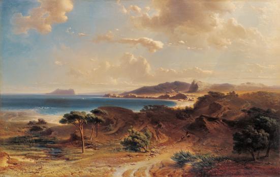 Playa de Estepona con la vista del Peñón de Gibraltar, 1855